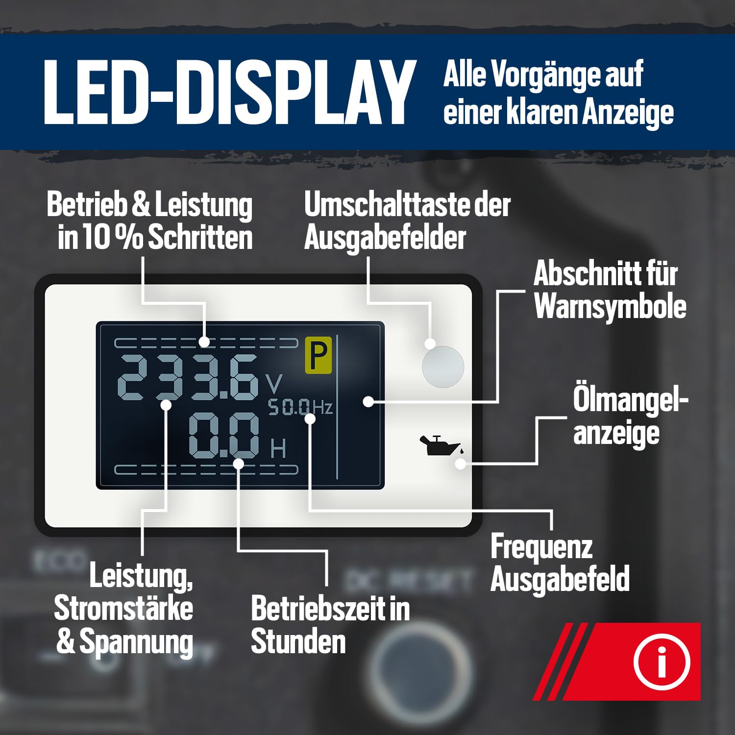 • HANDLING: Einfacher Startvorgang – einfach den Drehhebel betätigen und am Seilzug ziehen und schon kann es losgehen! Bequem zu transportieren durch leichtes Gewicht und integriertem Tragegriff. Alles im Blick durch das intelligente LED Display.
