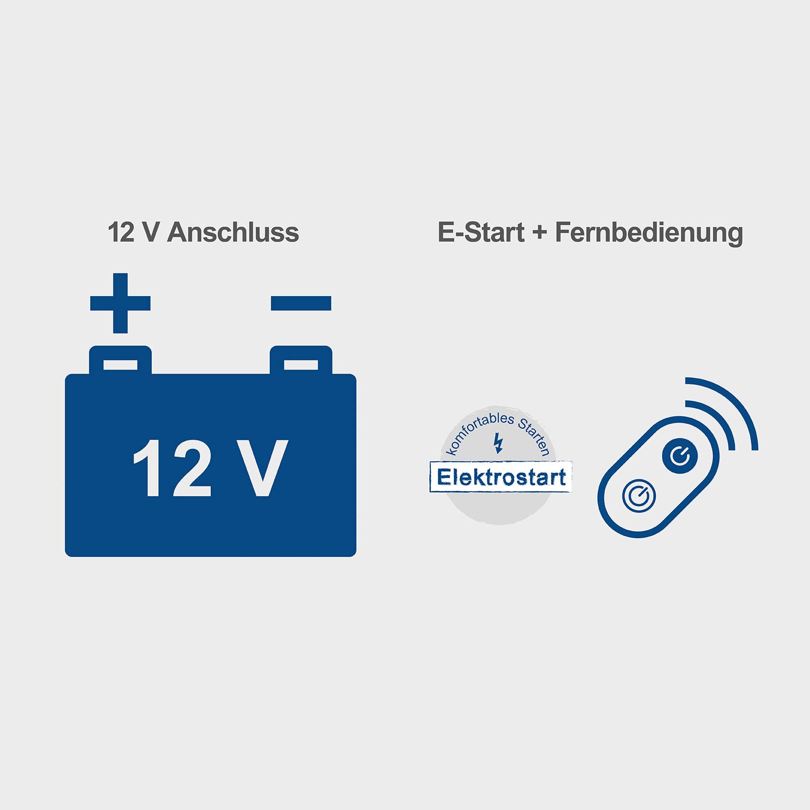 - Elektrostart über Fernbedienung oder Seilzugstarter